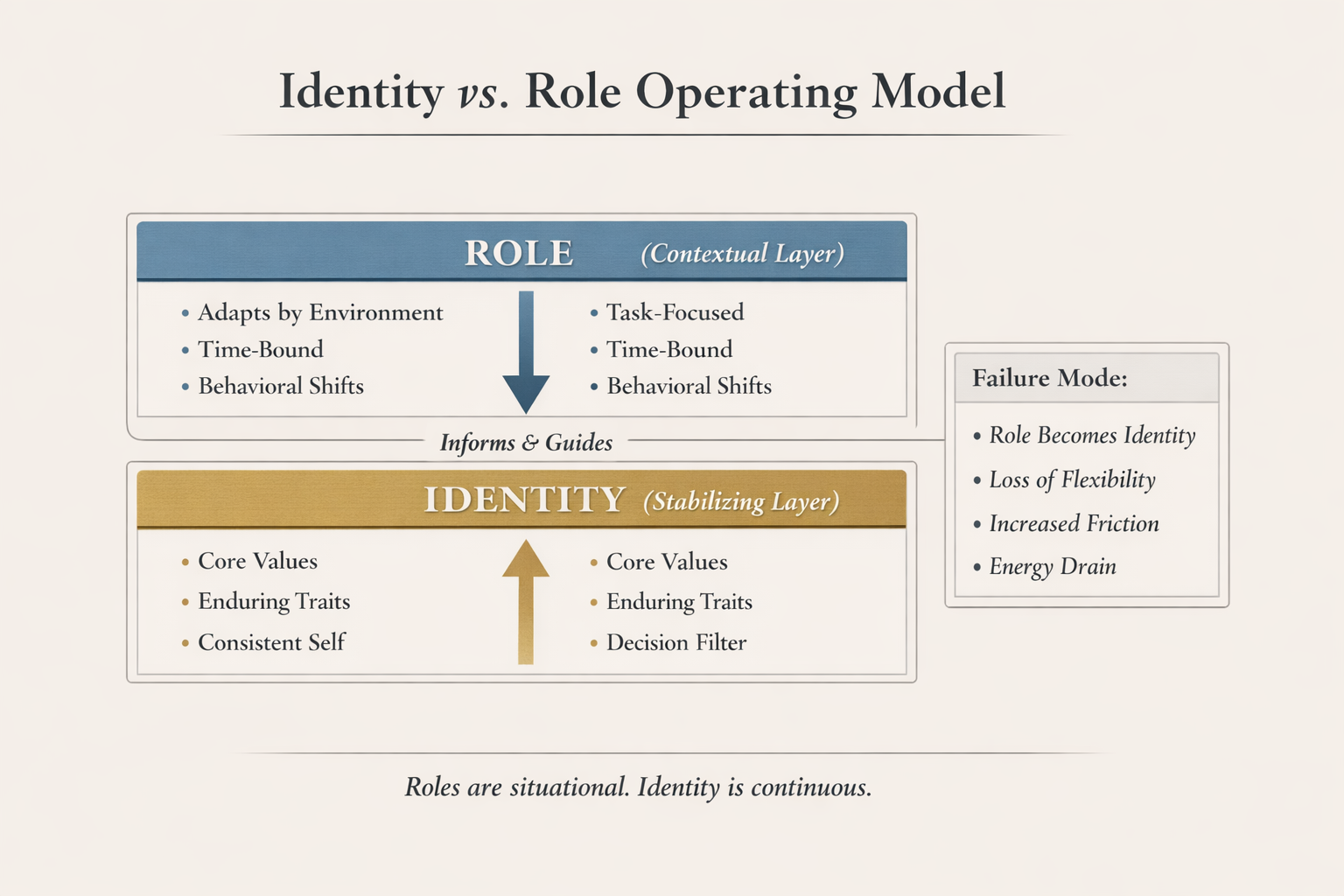 A stable identity does not require behavioral sameness. It requires coherence at the level of values. Roles can shift without destabilizing the person when identity remains intact.